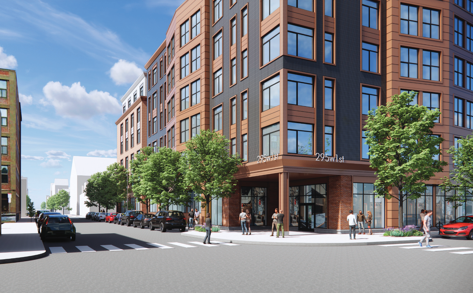 The building delivers 236 rental apartments across six stories, including 36 income-restricted units. It steps from 69’11” along West First Street down to 48’6″ along West Second Street, a massing shaped by both zoning requirements and community input through the BPDA’s Article 80B Large Project Review.