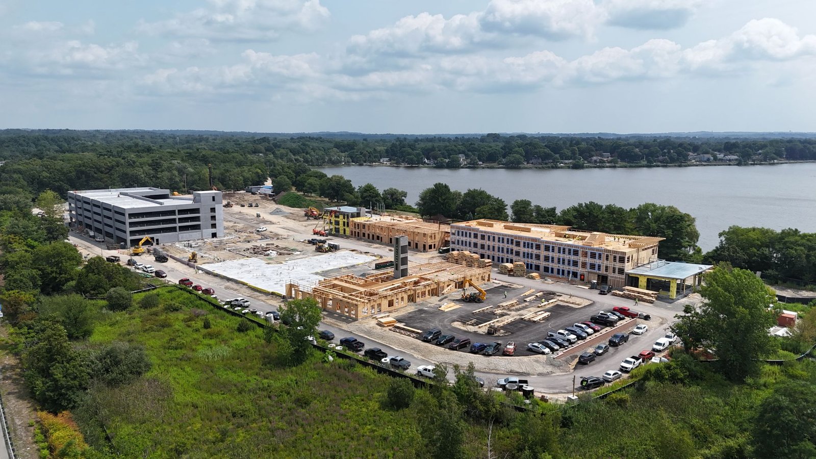The Basin at 200 QP brings 440 multifamily units to Wakefield, MA, on a redeveloped parcel along the shores of Lake Quannapowitt. Designed to embrace its lakeside setting, the project includes a walking path, multiple roof decks, and an extensive landscape program. Residents will benefit from convenient access to I-95/128 and a shuttle to the MBTA Commuter Rail. The development also features a 3,600 SF waterfront restaurant with an additional 2,000 SF outdoor patio. The design prioritizes both natural connection and commuter convenience.
