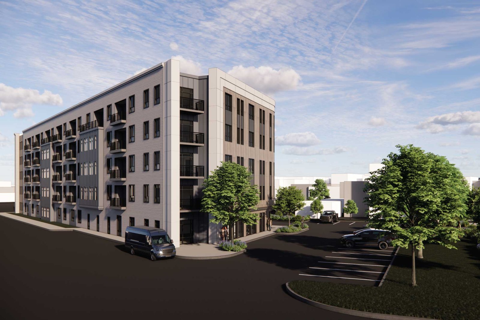 New 132-unit Passive House, development spanning 142,500 GSF, made up of 5 levels of Type IIIA wood construction.Unit mix includes studios, one-bedrooms and two-bedrooms. Amenities comprise of a welcome lobby, leasing office, resident lounge with a fireplace and a kitchen, private work from home rooms, a fitness center, dog grooming station, outdoor patio, and surface parking.