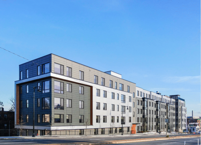 80-unit multifamily development at 525 Lincoln Street in Allston. The building consists of 5 stories of Type IIIA wood construction over a single-level concrete podium with structured parking. Landscaped courtyards are integrated above the podium, providing outdoor amenity space while the structural system balances cost efficiency with durable performance in a dense urban setting.